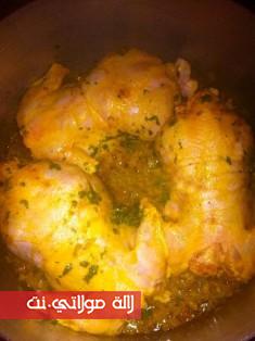 ثم كنحطو الدجاج فالطنجرة او كننقس البوطة عليه كلها او كنخلي البصلة تطلق الماء ديالها ليبيه كيطيب الدجاج على خاطرو