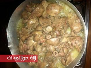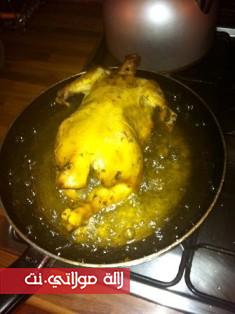 من بعدما طاب الدجاج كنحيدوه او كنحطوه على جنب او كنرميو فالمرقة ديال الدجاج هدوك لقشوش بعدما صفنهم من الماء مزيان توم كنضفو الزيتون أنا درت الزيتون ديال الدار رقدتو أنا