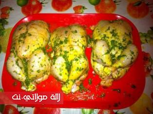 أول حاجة كنشدو الدجاج كنغسله مزيان مزيان بالملح او الحمض او كنقيوه مزيان مزيان من الداخل من بعد كنغسلوه مزيان مزيان او كنديره يقطر او كنشدو بانيو كندير فيه حمضة معصرة+البزار +القزبر+سكنجبير كنشدو هاد الخليط او كنرقدو فالدجاج من الدخل او من برا