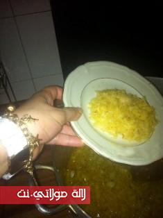 كنشدو لغلقة ديال الطنجرة او كنحطو فكها الزعفران شعرة يسخن مزيان توم كنحكوه بالكف ديالنا او كنديره فالدجاج او كنسد الطنجرة او كنخليو الدجاج يطيب